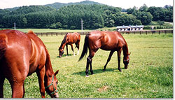 それにしても本当に静かだ。こんな環境ならいいサラブレッドが育つんだろうなぁ。そうこうしていると群れの一頭がこちらを見つけたのか首を上げて、じーっと見ている。一頭、また一頭と近くまで寄ってきて、ついにはみんな集まってきて俺の服を噛み始めた(笑)後から分かったのだが、噛んだりするのはグルーミングと言ってスキンシップの表れなのだそうだ